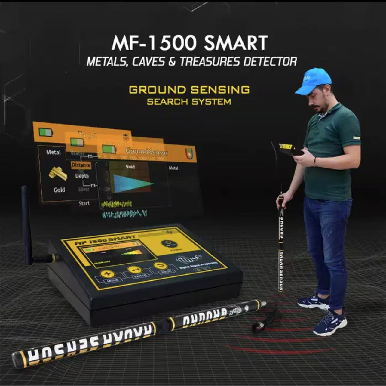 MF 1500 SMART,专门探测和勘探地下资源和矿物、黄金、矿物、水、宝石、钻石、空洞和洞穴,并提供可选清单。